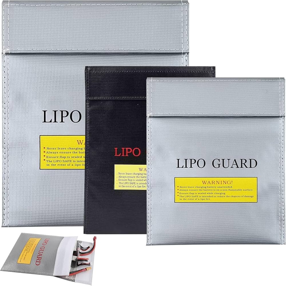 Esta bolsa segura para batería Lipo está hecha de material de alta calidad con una fuerte tensión que la hace más duradera y ecológica. La forma más segura para cargar el almacenamiento en viajes con baterías de drones de automóviles RC. Un poco de dinero puede proteger su taller, su familia y su hogar del peligro de la carga Lipo.